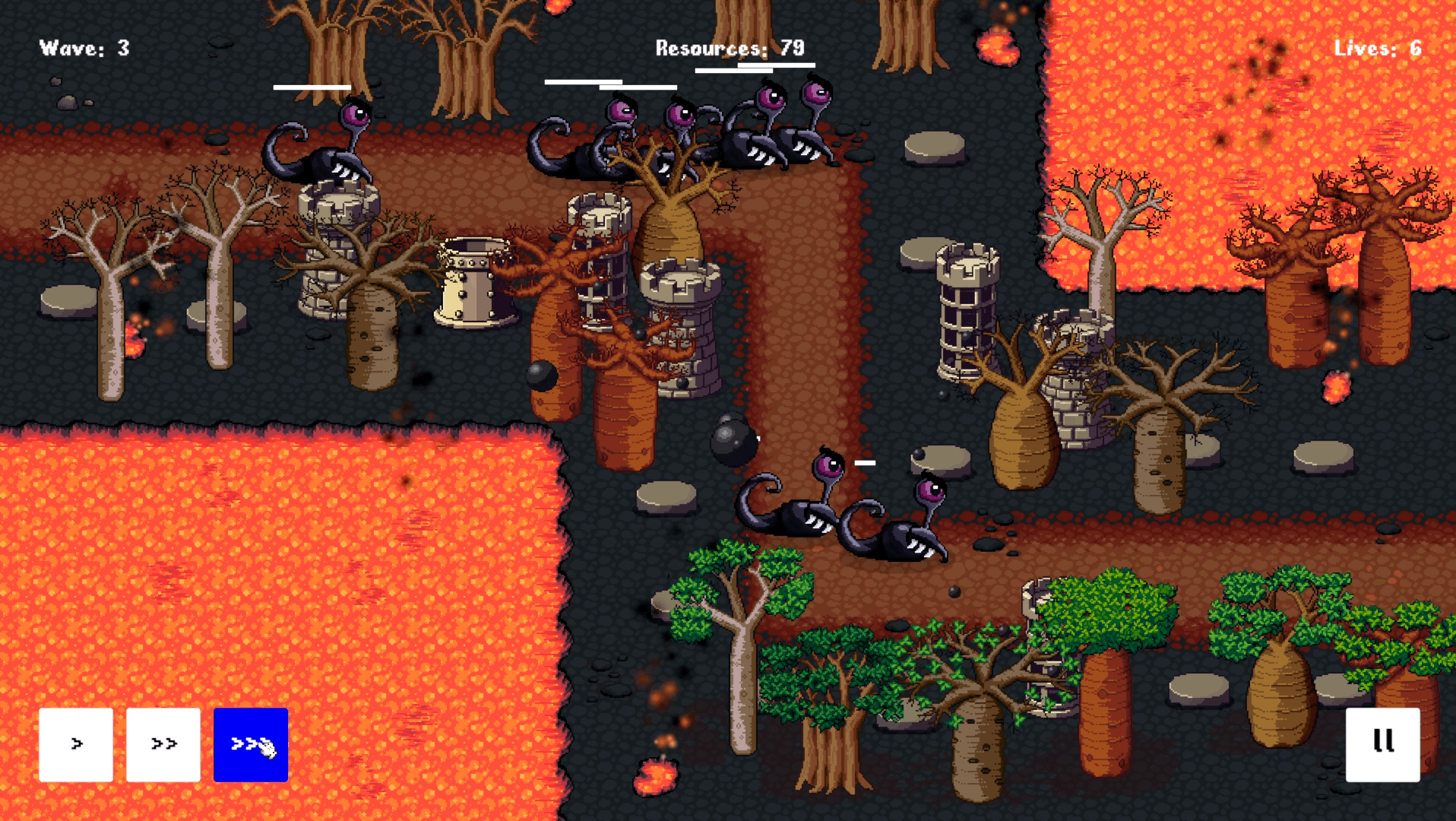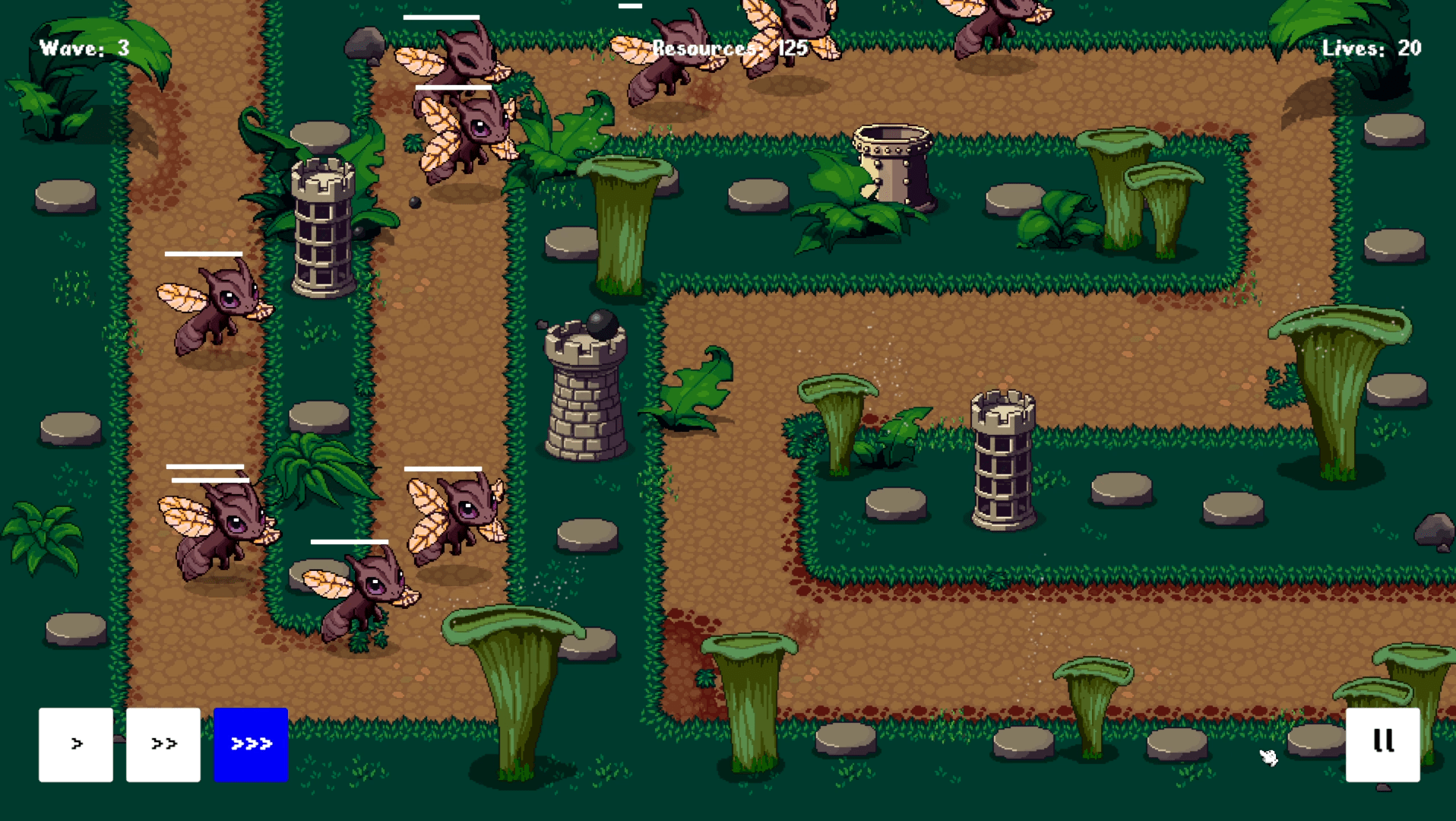 Survive waves of incoming enemies by placing towers on available platforms. Earn resources, choose from three unique tower types, and build your defenses strategically. With each wave the challenge grows, can you survive all three levels?
